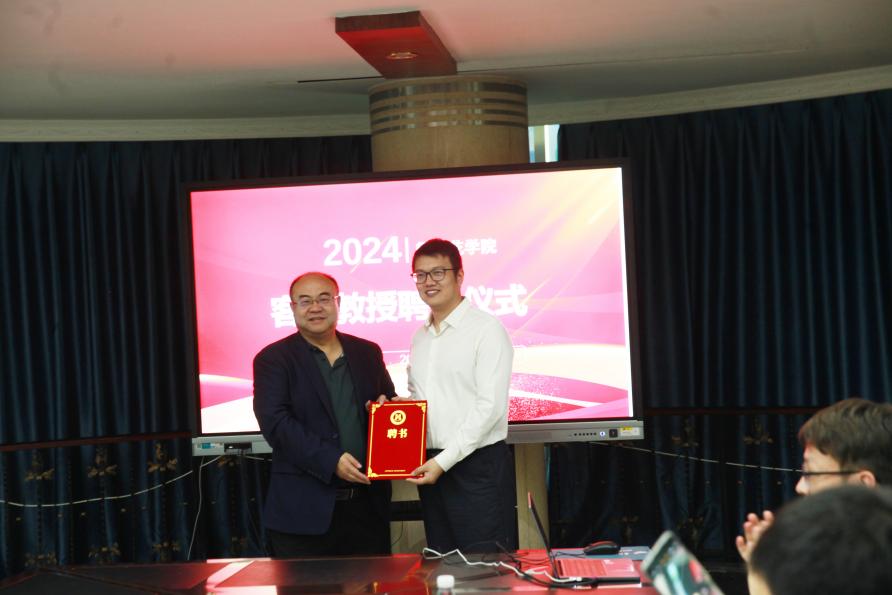 会上,学校聘任刘同旭为客座教授,并为其颁发客座教授聘任证书。