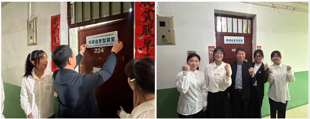 会后,朱云生带领相关职能部门和二级学院领导前往社区进行荣誉寝室挂牌活动。