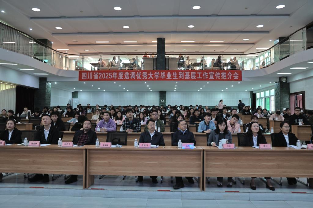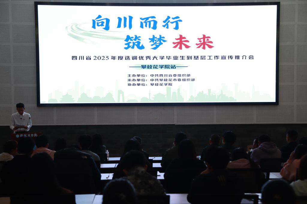 为进一步加大基层选调生招录政策宣传力度,吸引更多优秀大学毕业生投身基层,11月6日上午,由四川省委组织部主办、攀枝花市委组织部承办、beat365在线唯一官网协办的“四川省2025年度选调优秀大学毕业生到基层工作宣传推介会”在学术报告厅隆重召开。省、市、县(区)委组织部相关领导,学校副校长王兵,学校组织部、人事处、招就处相关负责人,基层选调生代表,学校2025届部分毕业生及毕业生辅导员220余人参加会议。