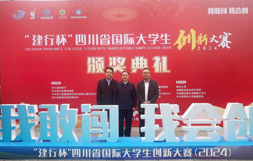 11月8日,四川省国际大学生创新大赛(2024)颁奖典礼在西华大学郫都校区举行,副校长王兵带领创新创业学院负责人参加典礼,并代表学校领奖。