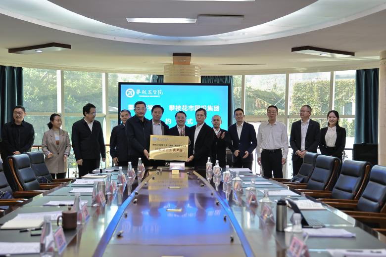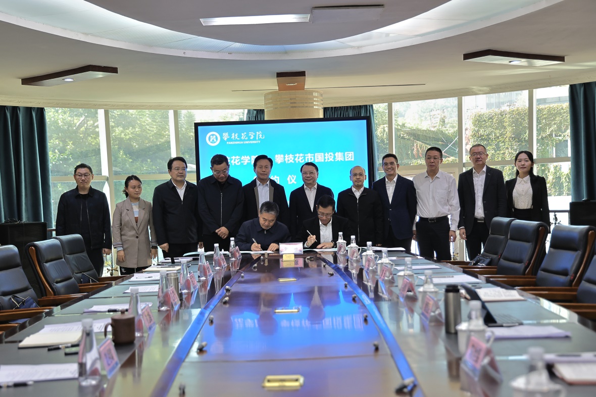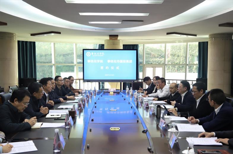 学校产教融合发展部、科研处、教务处、土建学院、文学院、数计学院、经管学院、钒钛学院、艺术学院相关负责人,攀枝花国投集团相关部门负责人参加仪式。