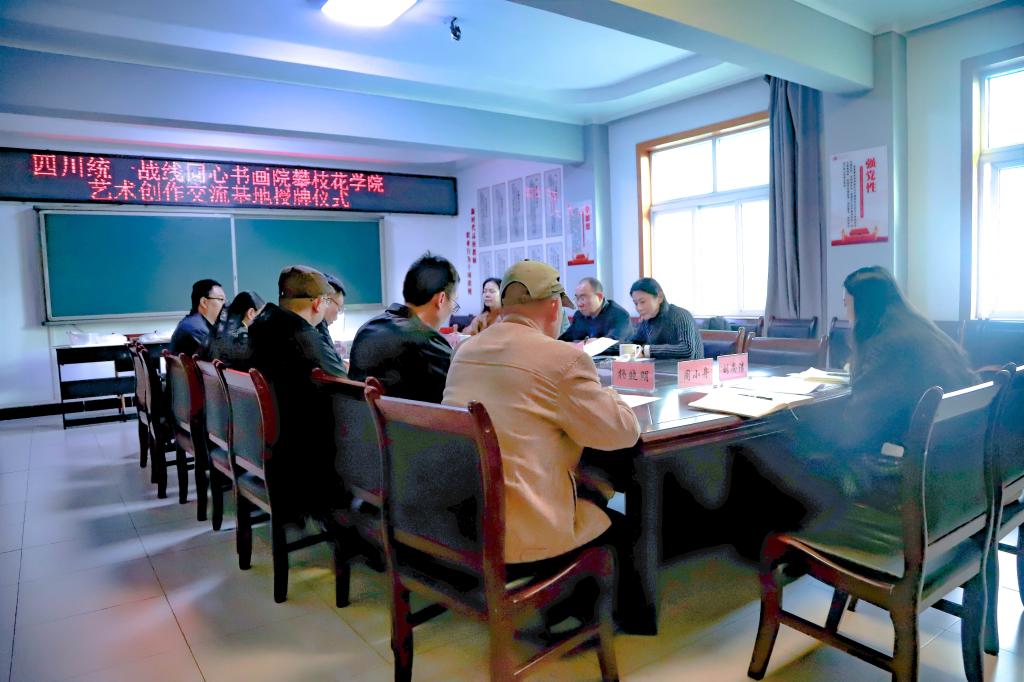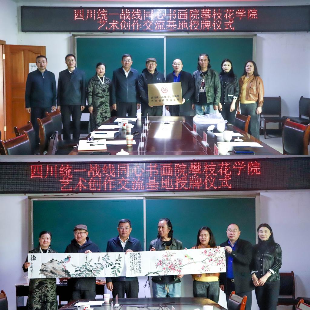 11月20日,四川统一战线同心书画院beat365在线唯一官网“艺术创作交流基地”授牌仪式在艺术学院会议室圆满举行。四川统一战线同心书画院常务副院长、四川省校园文学协会常务副会长兼秘书长孙成,四川统一战线同心书画院副院长、民进中央书画院副院长、四川开明画院院长杨晓亮,四川省社会主义学院一级调研员、同心书画院秘书长张正,四川统一战线同心书画院花鸟画专委会研究员谢从会,学校党委副书记刘立新出席活动,统战部、艺术学院、康养学院有关负责人,艺术学院师生代表参加活动。