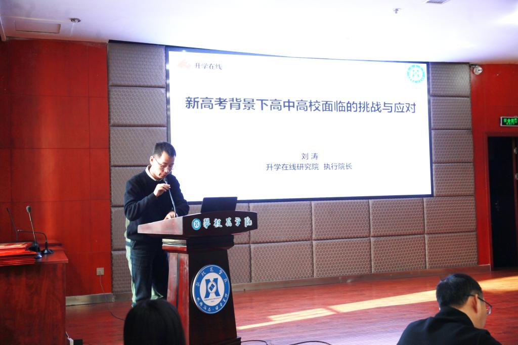 升学在线研究院执行院长刘涛围绕新高考改革的背景、意义、实施路径等方面,针对新高考改革相关作专题讲座。