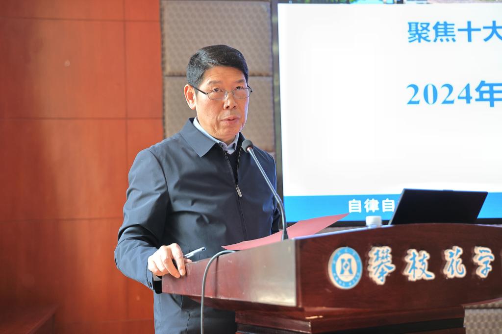 为全面推进学校育人工作,统筹教育教学和管理服务各环节、各方面的育人资源和育人力量,持续协同深化十大育人工作体系,12月13日,学校在弘毅楼416会议室召开“聚焦十大育人 创建特色品牌——十大育人年度汇报工作会”。党委书记胥刚出席会议并讲话,会议由副校长朱云生主持。