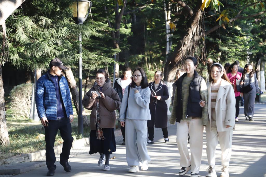 活动当天,天气晴朗,阳光明媚。教职工们精神抖擞地从产教融合大楼左侧校园与公园连接处出发,沿着既定的路线一路行进。大家或谈笑风生,或相互鼓励,气氛热烈而和谐。健步行路线贯穿校园和公园多个景点,让参与的职工在锻炼身体的同时,也能欣赏到校园的美丽风光。