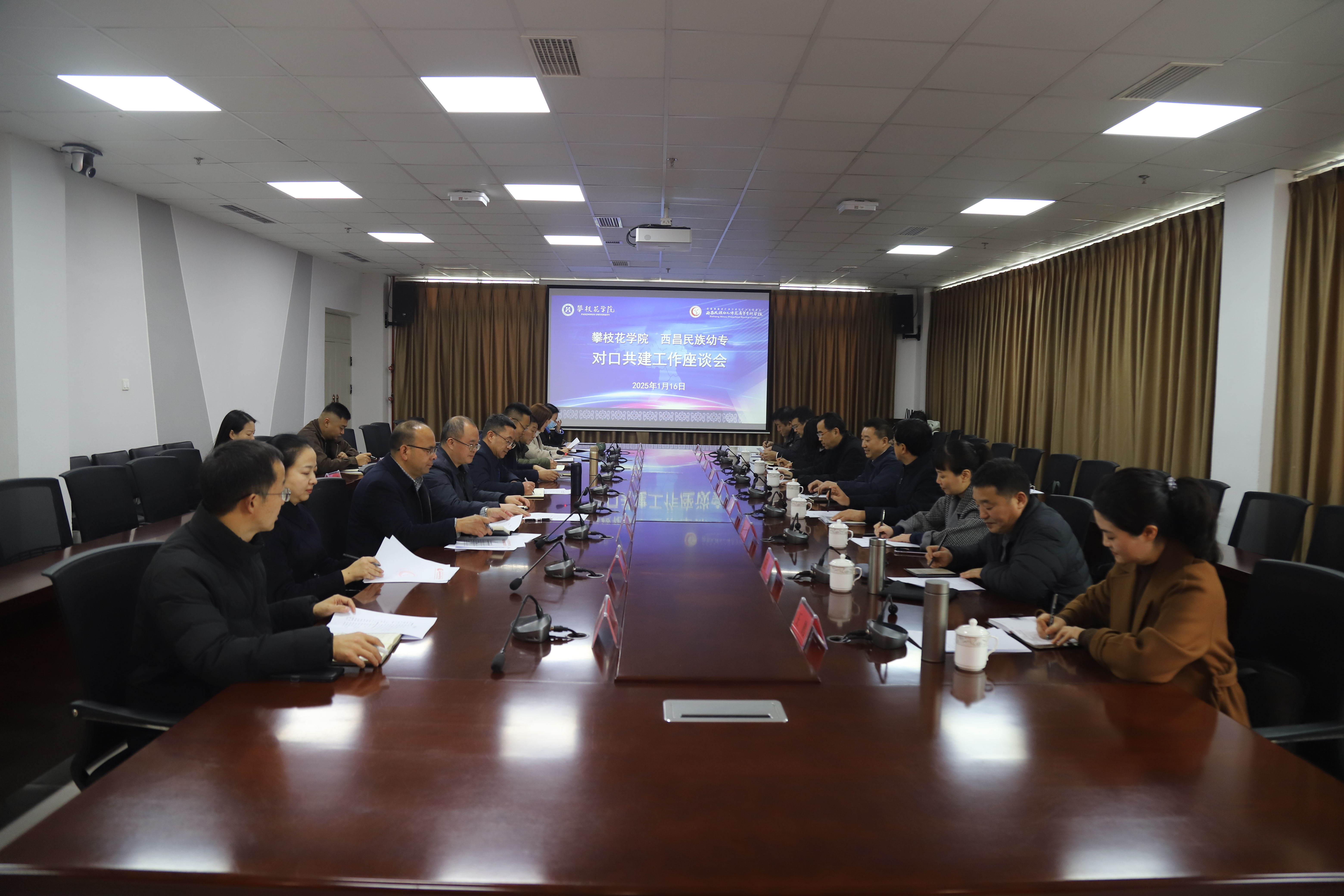 西昌民族幼专人事处、宣传统战部、党政办、教务处、科技与合作交流处、职业教育系、团委相关负责人,学校党政办、组织部、宣传部、人事处、科研处、团委、产教融合部相关负责同志参加会议。