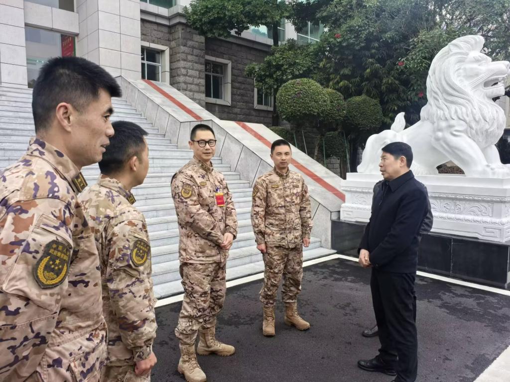 1月26日下午,党委常委、副校长朱云生带领学校武装部相关人员,前往攀枝花武警支队、攀枝花市东区武装部,向坚守岗位的官兵们送上新春祝福。