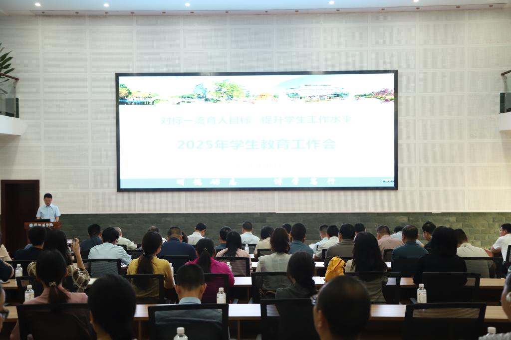 4月10日上午,beat365在博雅厅召开2025年学生教育工作会。学工部、教务处、后管处、招就处、保卫处、体育部、马院、团委、心理中心负责人,各二级学院党委书记、副书记,学生科科长、全体辅导员参加会议。党委书记胥刚出席会议并讲话,副校长朱云生安排2025年学生教育管理工作。