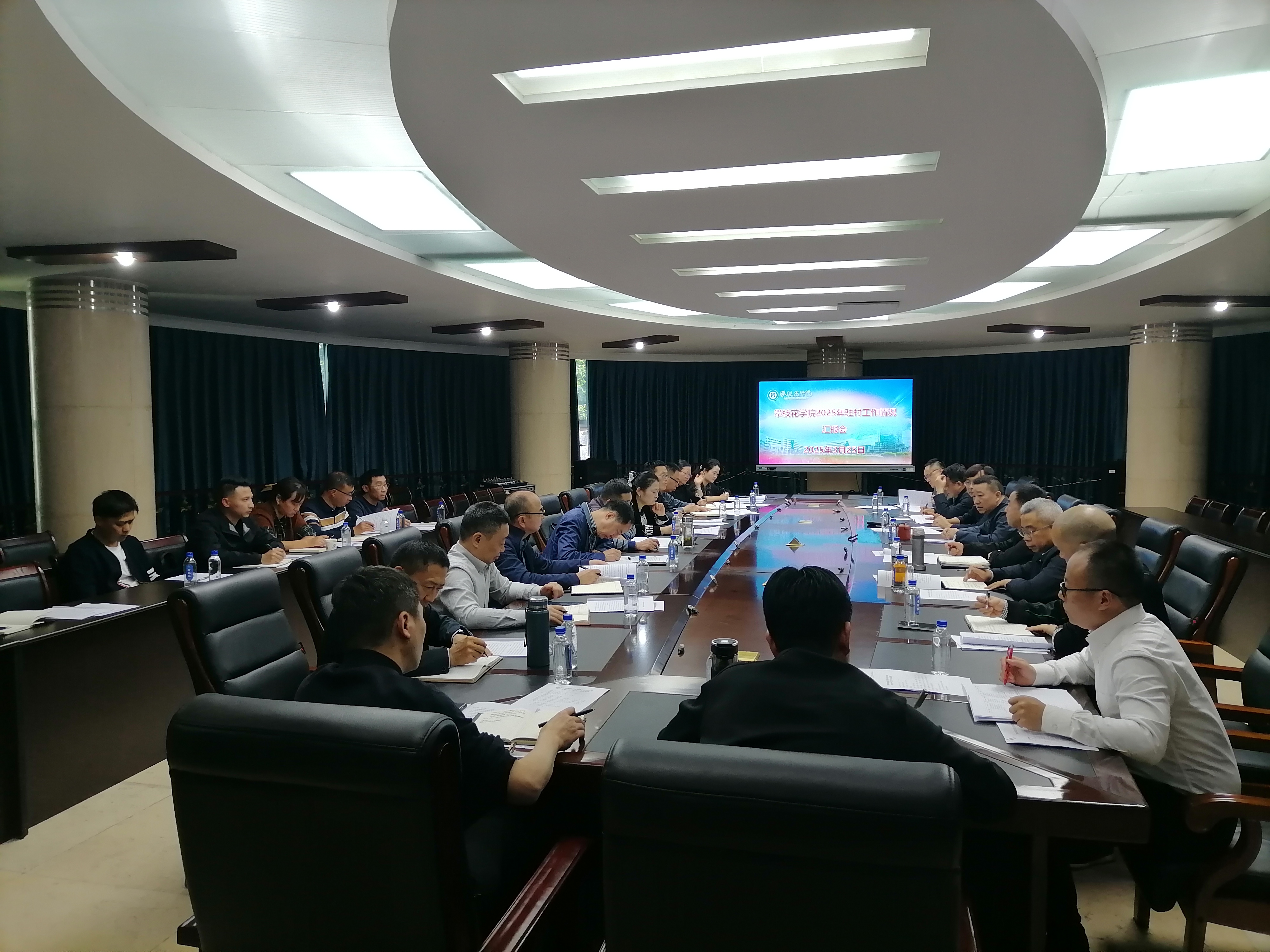 党政办、组织部、宣传部、巡察办、人事处、后管处、科研处、招就处、工会、团委、体育部、艺术学院、土建学院、创业学院、外国语学院、马克思主义学院、数计学院、钒钛学院、生化学院、康养学院,机关党委第九支部、第十四支部相关负责人及驻村帮扶干部代表参加会议。