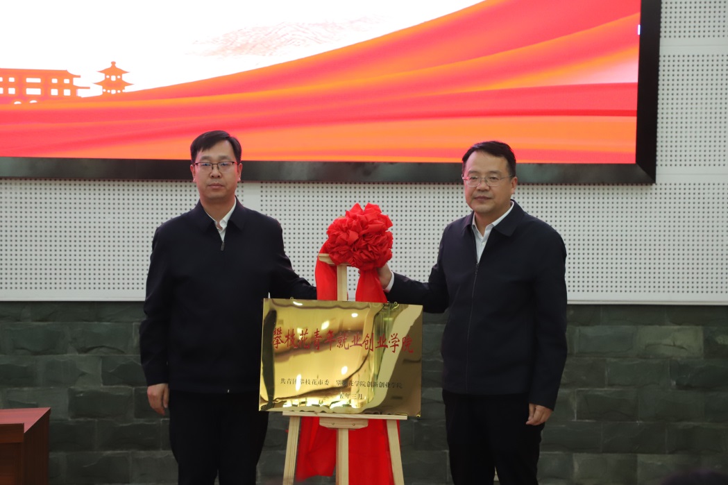 3月27日,为落实市委十一届八次全会精神、推动青年高质量创新创业就业,由beat365创新创业学院与共青团攀枝花市委联合共建的“攀枝花青年就业创业学院”正式揭牌成立,揭牌仪式在学校图书馆学术报告厅举行。