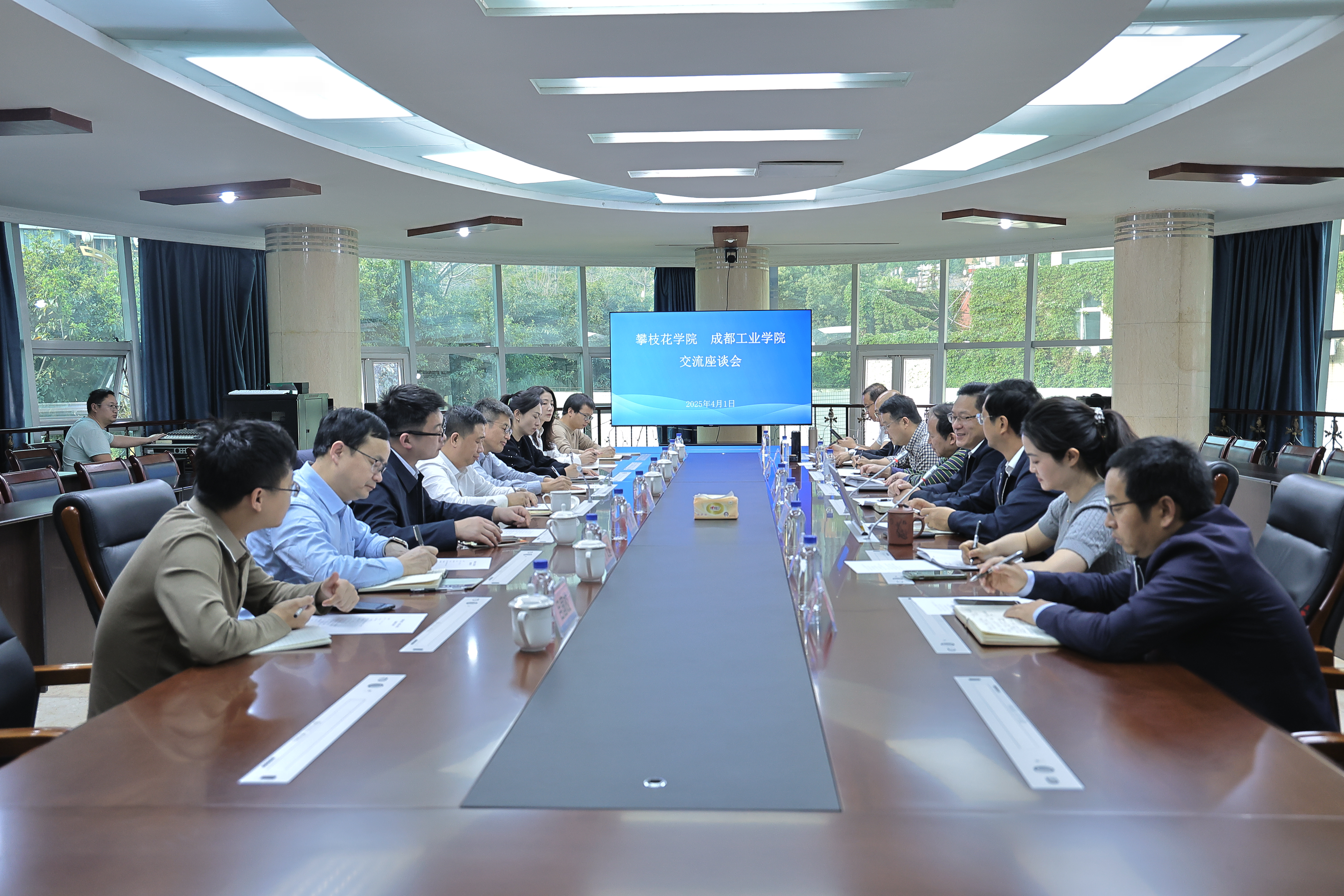 学校研究生处、科研处、钒钛学院、电气学院、智造学院负责人,成都工业学院发展规划处、学科建设与科技发展处、材料与环境工程学院、智能制造学院、电子工程学院相关负责人参加会议。