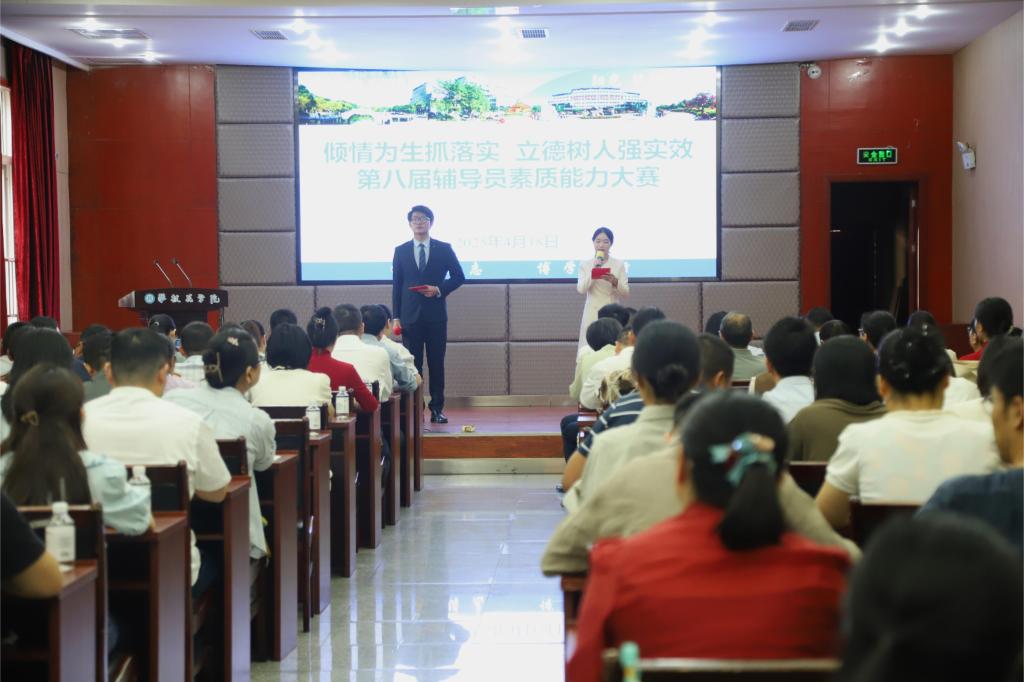 4 月 18 日,学校在弘毅楼 416 室举办了“倾情为生抓落实 立德树人强实效”第八届辅导员素质能力大赛决赛。党委书记胥刚出席比赛并讲话。四川省高校辅导员素质能力大赛一等奖获得者、四川师范大学优秀辅导员卓飞,贵州省第五届高校辅导员年度人物、贵州师范大学优秀辅导员杨波应邀担任评委并分别就案例分析和谈心谈话环节进行点评。
