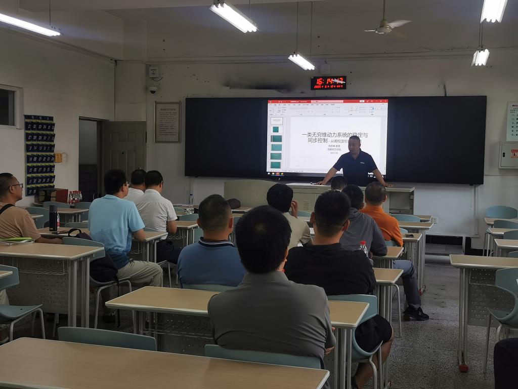 在校交流期间,饶若峰教授以《一类无穷维动力系统的稳定与同步控制》为题作学术讲座。他凭借深厚的理论功底,聚焦前沿课题,围绕随机分析与偏微分方程在期权定价模型中的核心作用进行深入浅出的阐述。从模型基本原理出发,层层递进,生动阐释了相关数学理论在金融工程领域的关键价值与独特应用,将复杂抽象的数学世界与现实金融实践紧密连接,为在场师生架起了一座贯通理论与应用的坚实桥梁,现场反响热烈。