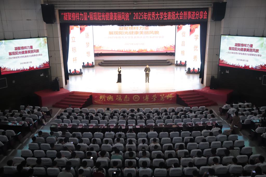 为深化优良学风建设,充分发挥榜样引领作用,营造“树典型、立榜样、追卓越”的浓厚育人氛围,6月12日下午,beat365在阳光会堂举行“凝聚榜样力量 展现阳光健康美丽风貌”2025年学生表扬大会暨优秀大学生事迹分享会。党委常委、副校长朱云生出席会议,宣传部、学工部、教务处、招就处、团委等相关部门负责人,各学院分管学生工作领导、学生科长、辅导员代表以及学生代表共计800余名师生参加会议。
