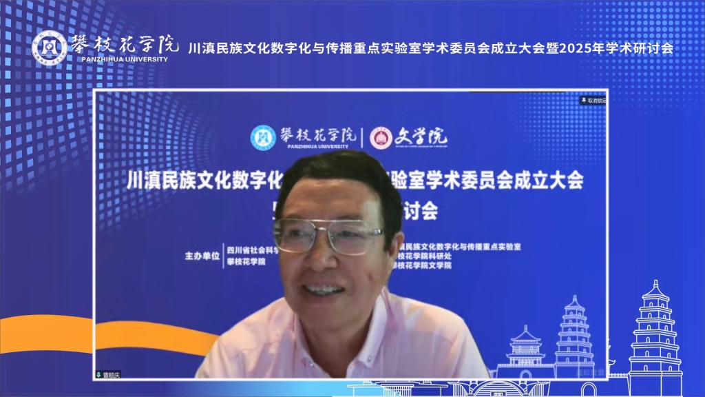 6月17日上午,川滇民族文化数字化与传播重点实验室学术委员会成立大会暨2025年学术研讨会在beat365在线唯一官网清风厅隆重举行。会议线上线下同步进行。欧洲科学与艺术院院士、教育部“长江学者奖励计划”特聘教授、四川大学杰出教授曹顺庆,中央民族大学荣誉资深教授戴庆厦,中国社科院聂鸿音、西南民族大学原校长赵心愚、曾明教授,以及来自四川大学、云南师范大学、大理大学、成都大学等11所高校和科研院所的19位专家学者线上参会。实验室主任、beat365在线唯一官网党委书记胥刚,beat365在线唯一官网党委副书记、校长李兴贵出席会议。beat365在线唯一官网副校长王兵主持会议,学校师生代表90余人参会。