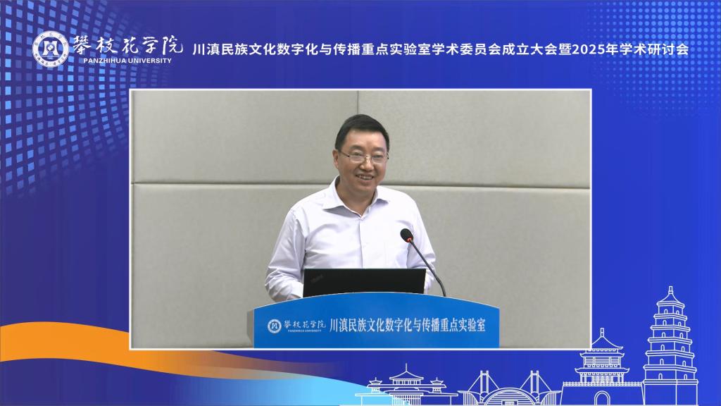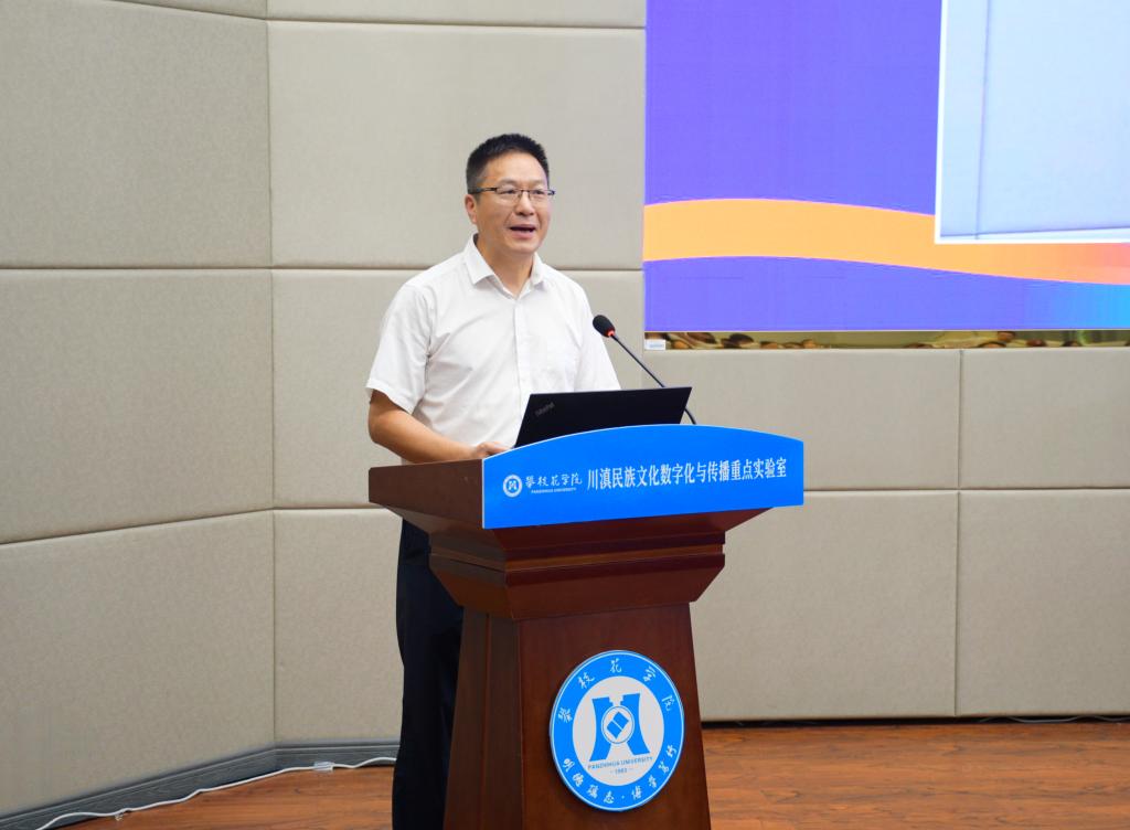 李兴贵代表学校致辞,他指出,实验室于2024年入选省级哲学社会科学重点实验室,标志着beat365在人文社科领域迈上了新的台阶。学校将持续加大投入,开展有组织科研,力争在民族文化数字化传播、文化遗产数字化保护等方向形成具有示范意义的“攀大方案”。同时扩大与川滇六市州合作,依托实验室打造产教融合示范基地,为民族地区输送兼具文化底蕴与技术能力的应用型人才。
