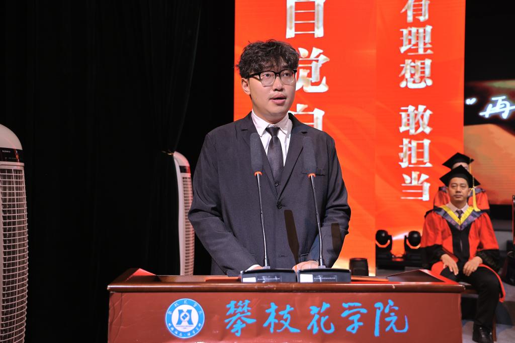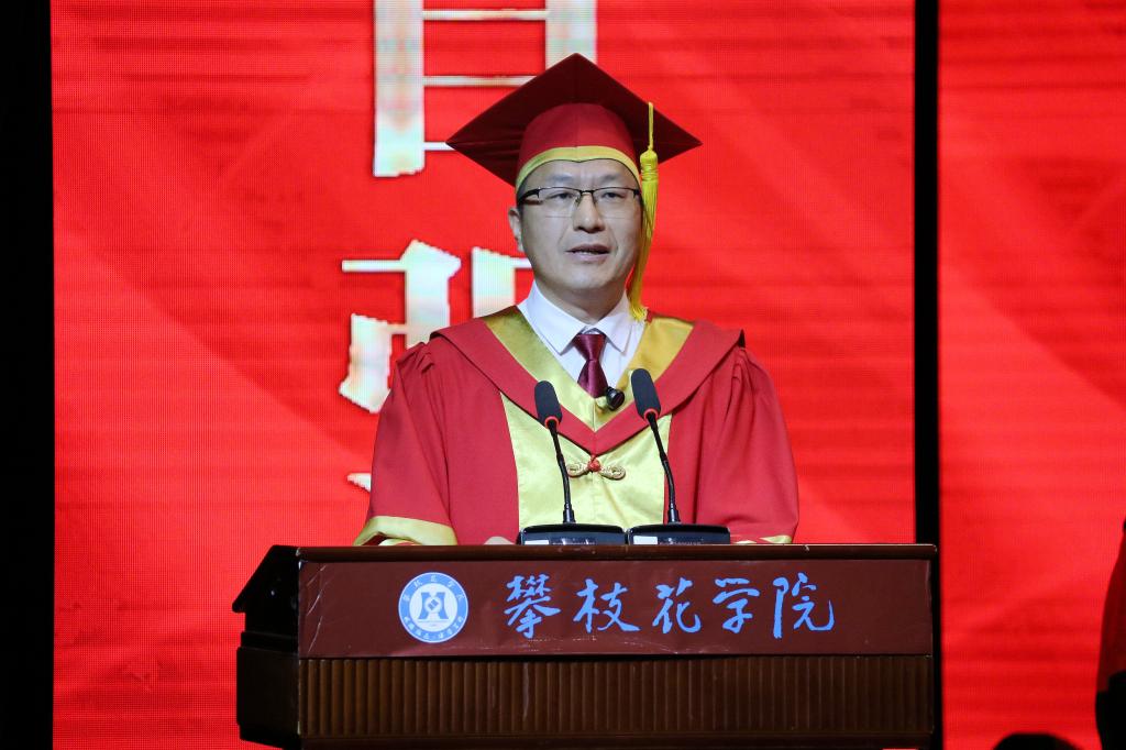 他寄语全体毕业生要学习攀枝花树的品格,像攀枝花一样,深根固柢、笃行不怠,向阳而生、勇攀高峰,绚烂绽放、温暖四方。希望毕业生们保持“自律自觉自强”的思想行动状态,将“永攀”精神融入未来发展,以品德为根,在岗位上拼搏奋进,用专业与爱心为社会添彩,书写不负时代的青春荣光。