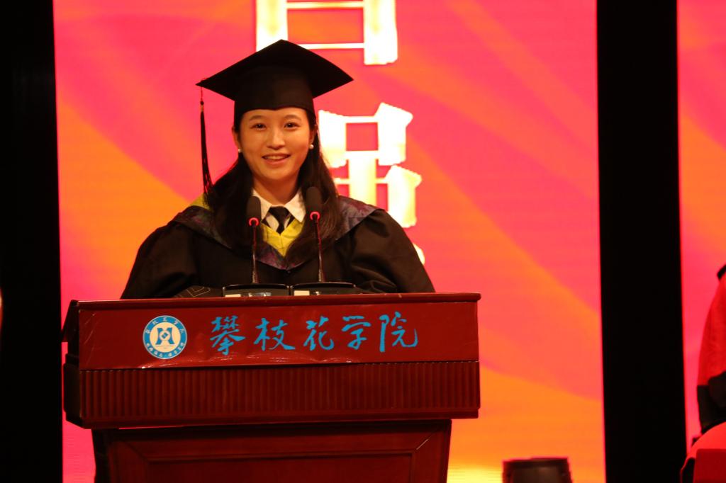 智能制造学院2022级曾佳玉代表在校学生为毕业生送上美好的祝福,祝愿学长学姐前程似锦,未来如光,无论走到何方,都能带着攀大赋予的勇气,书写精彩人生。