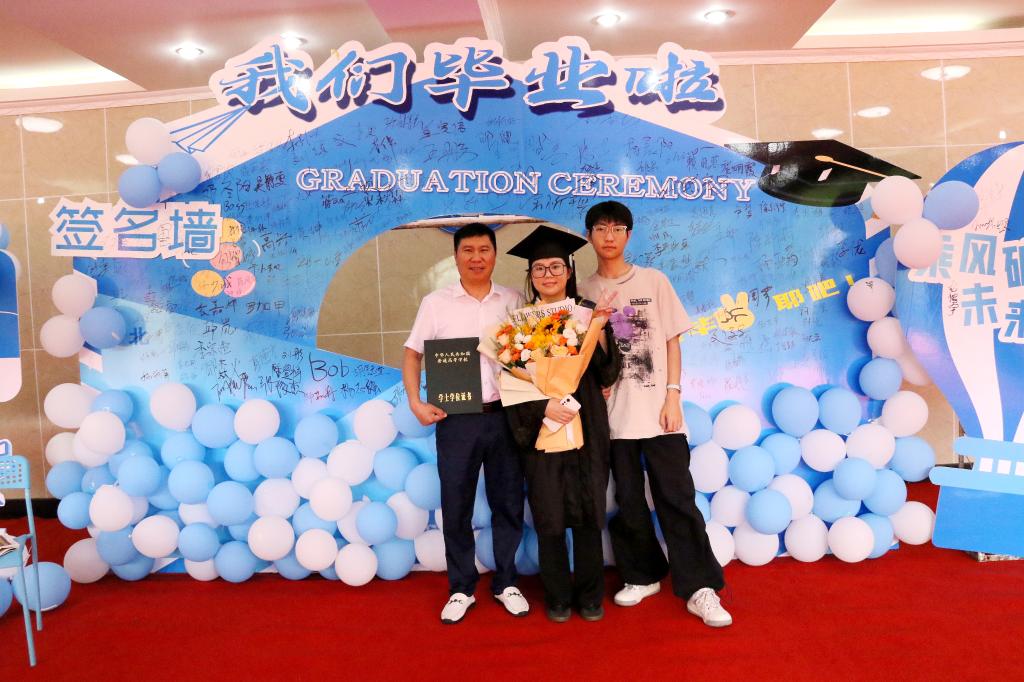 生化学院2021级辅导员邓建梅代表全体教师寄语毕业生要保持热爱,勇敢追梦;终身学习,与时俱进;心怀感恩,勇于担当,带着“明德砺志、博学笃行”的校训走向四方,做一个有温度、有担当的人。