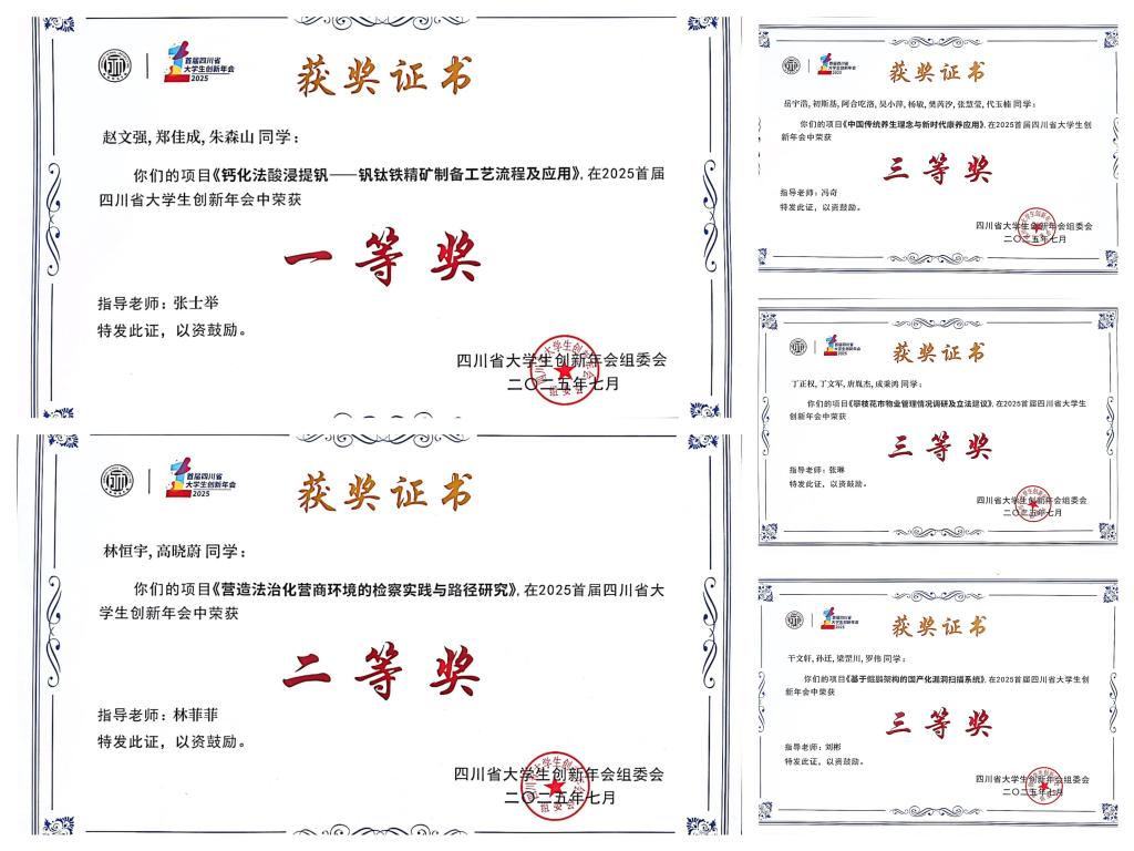 7月4日至6日,由四川省教育厅主办的2025年首届四川省大学生创新年会在成都师范学院举办。经过激烈角逐,beat365参赛团队从543个初赛项目中脱颖而出,获一等奖1项、二等奖1项、三等奖3项。