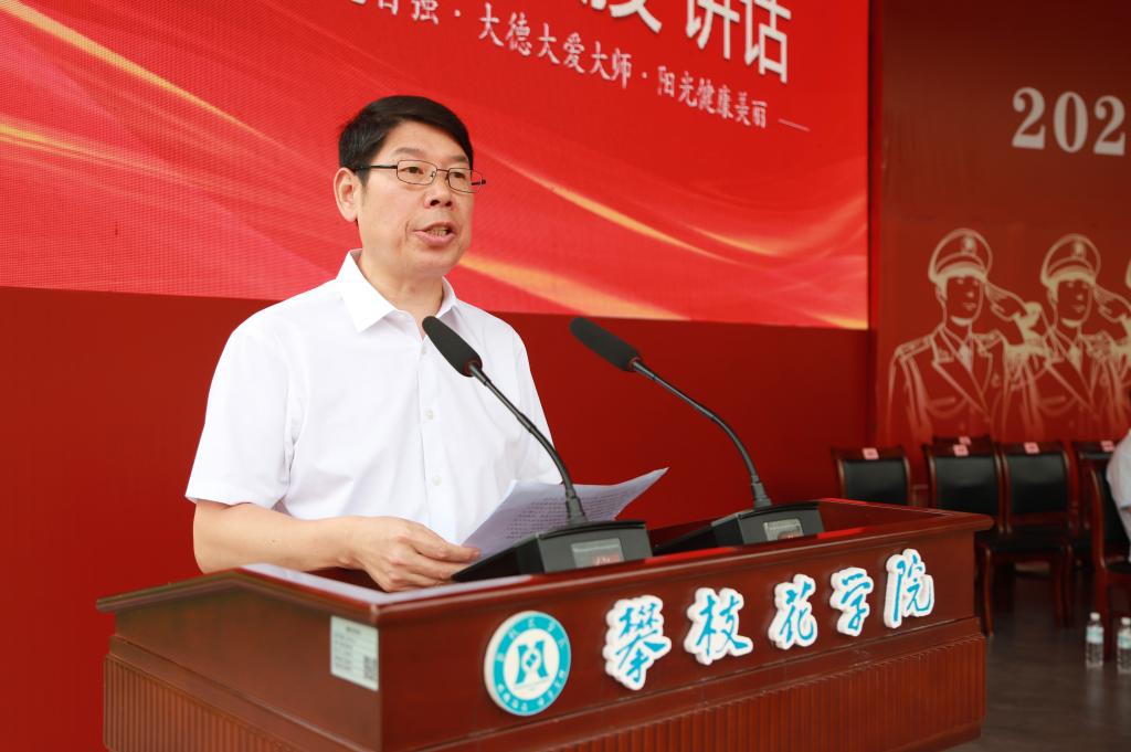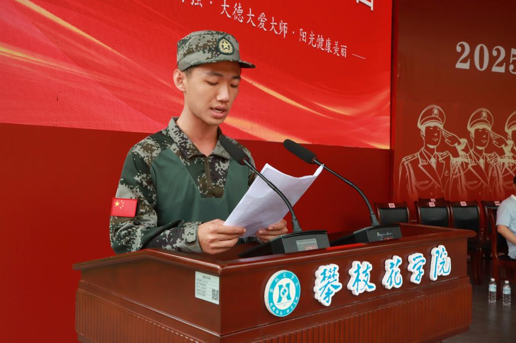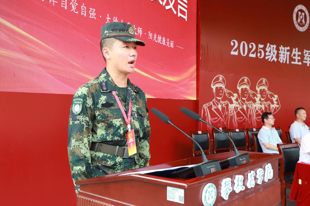 智能制造学院2023级机器人专业学生唐景明作为教官代表发言。他表示将规范科目、统一标准、文明带训、科学组训,充分展现出退伍大学生教官的良好风貌与青春担当。
