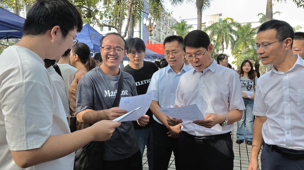 瑞安市人社局党委委员、副局长吴存谷带领20家本地重点企业来校招才引智,涵盖制造业、信息技术、金融服务等多个行业,共提供67个岗位、936个用人需求。学校党委常委、副校长朱云生来到现场,与瑞安市人社局、用人单位及毕业生深入交流,详细了解企业用人需求和毕业生求职意向。