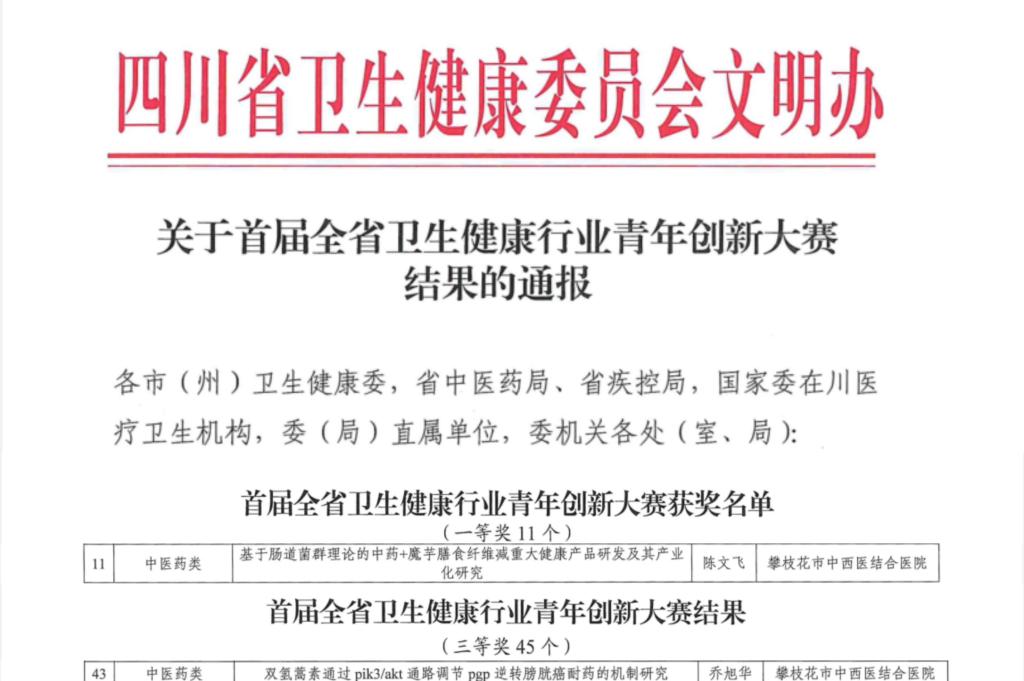 近日,四川省卫生健康委文明办公布了首届全省卫生健康行业青年创新大赛获奖名单,beat365附属医院青年医务工作者陈文飞主持项目荣获一等奖、乔旭华主持项目荣获三等奖,充分展现了beat365附属医院在医学研究与技术创新领域的强劲实力。