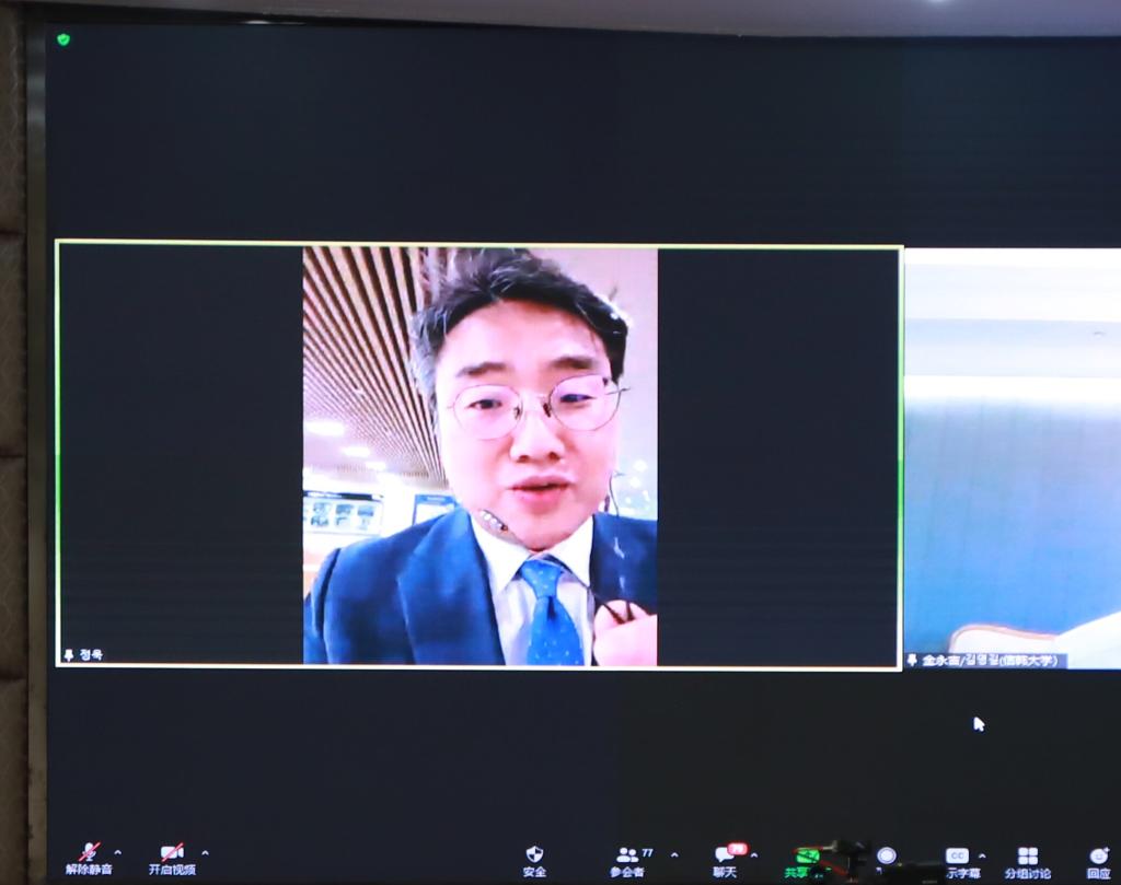 国际合作与交流处,经管学院相关负责人、工商管理专业骨干教师及全体研究生、留学生代表及中韩专家学者110余人线上线下同步参会。