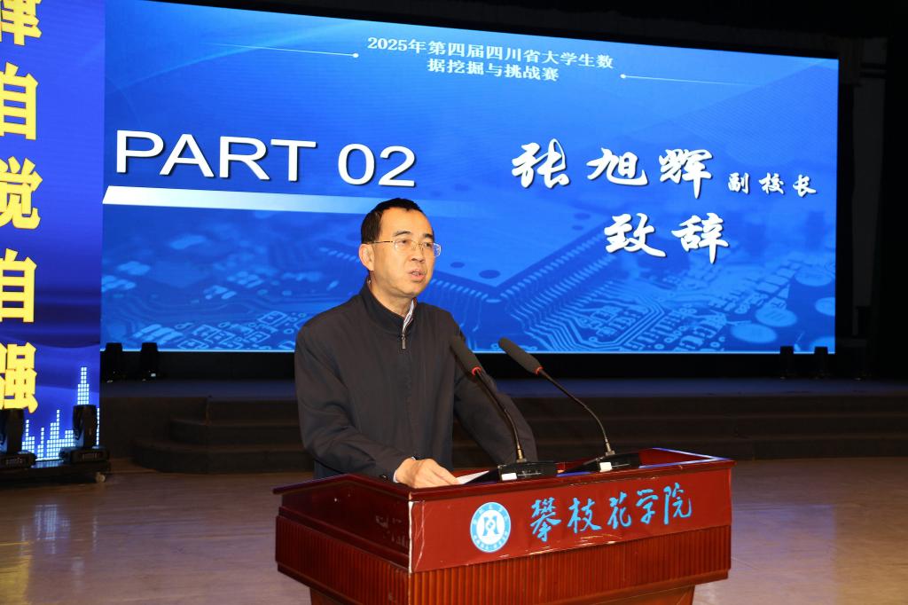 张旭辉代表承办单位致欢迎辞。他代表学校对全体嘉宾和参赛师生表示热烈欢迎。他指出,数据作为新时代的关键生产要素和基础性战略资源,其价值的挖掘与应用正深刻改变着我们的生产生活方式,驱动着社会各领域的创新发展,希望青年学子在数据海洋中探索真知,锤炼创新能力,并预祝各参赛队伍赛出水平、展现风采。他表示,学校将以承办此次大赛为契机,持续深化“产教融合、赛教融合”,积极推动信息技术与教育教学、科学研究的深度融合,为四川建设国家数字经济创新发展试验区贡献beat365在线唯一官网力量。