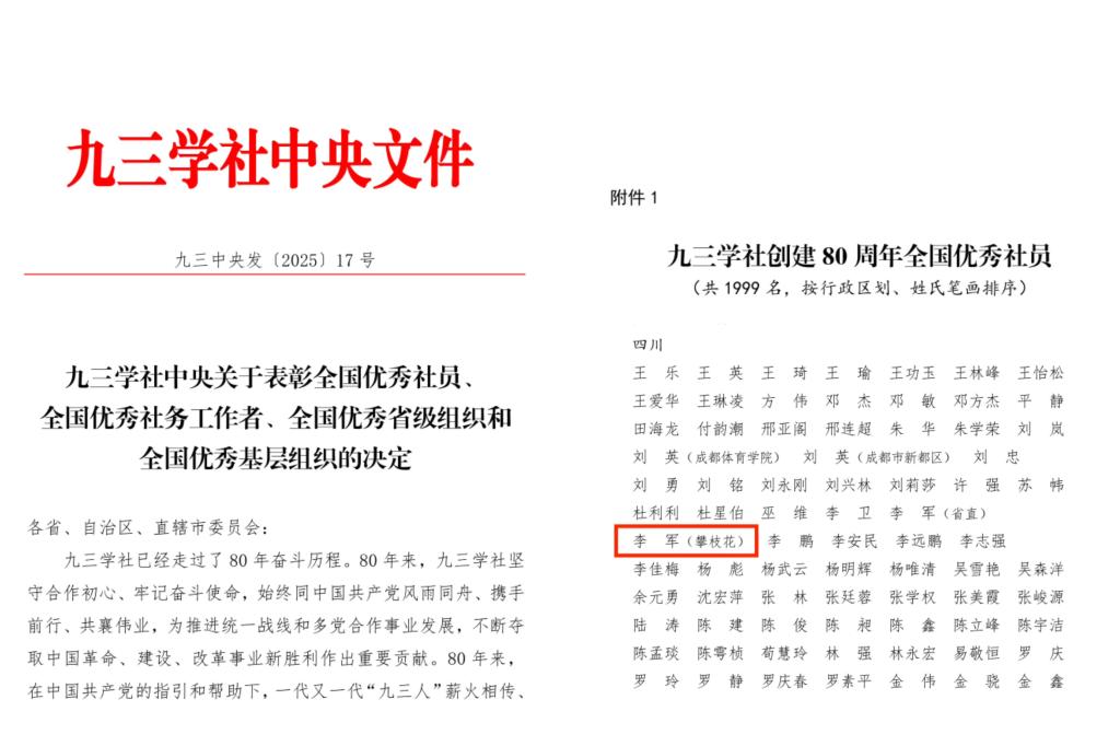 作为学校教学科研骨干与九三学社基层组织中坚力量,李军博士始终立足“双岗建功”,在本职工作中深耕细作,在社务工作中担当尽责。教学科研方面,他牵头教研教改项目,带领学生在学科竞赛中屡获佳绩,聚焦攀枝花优势产业开展科研攻关;参政议政方面,他组建青年建言献策工作室,围绕地方经济社会发展、学校高质量建设等关键议题,撰写多篇高质量提案与调研报告,其中《关于攀枝花市打造高水平天府第二粮仓的建议》等成果获省级表彰,为校地协同发展提供了重要智力支撑。