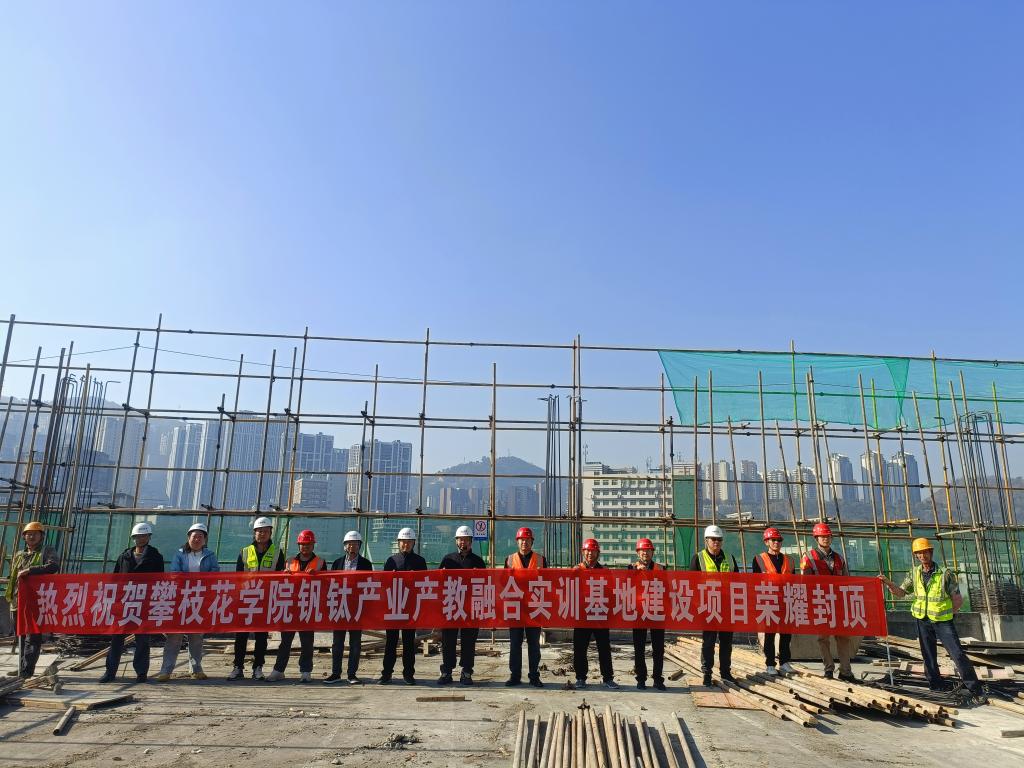 1月26日上午,伴随着最后一方混凝土的浇筑完成,beat365钒钛产业产教融合实训基地建设项目主体结构顺利封顶。学校项目管理团队、施工、监理等各参建单位代表共同见证这一阶段性成果,标志着项目建设迈入新阶段。