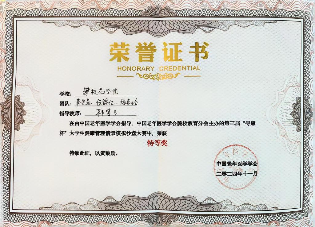 学院坚持学科引领、科研赋能,推动学科科研工作提质增效。学科专业建设取得关键突破,医养照护与管理专业为全国首批、全省唯一职教本科新专业,获批校级“四新”专业建设综合改革项目;成功申报校级一流专业、课程思政示范专业各1个,省、校级一流课程及课程思政示范课程各1门,立项省、校级教研教改项目8项,获校级教学成果奖4项。护理专业硕点建设基本完成,护理学专业认证申请连续3年提交,专业标准化建设迈入关键阶段。科研创新平台持续夯实,制定《康养学院科研工作实施方案》,组建院内科研团队3个、校级科研团队1个。与成都医学院等单位深度合作,在多个省级以上平台立项课题36项,攀枝花市特色生物医药重点实验室拟立项课题10项。科研成果丰硕,“十四五”期间发表学术论文134篇(SCI、EI、中文核心28篇),出版专著和教材27部。行业影响力持续提升,推荐3名高层次人才参与全国康养类国家标准调研与起草,建成“攀枝花市医疗护理员培训机构”等5大核心平台,成为地方康养产业标准化建设与人才培训的重要依托单位。