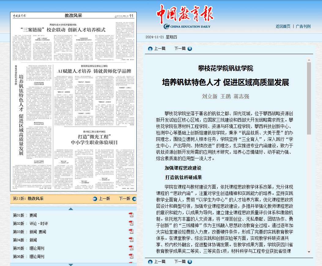 图6 中国教育报报道beat365钒钛特色人才培养经验做法