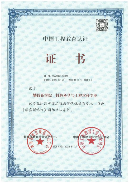 图4 材料科学与与工程专业通过工程认证