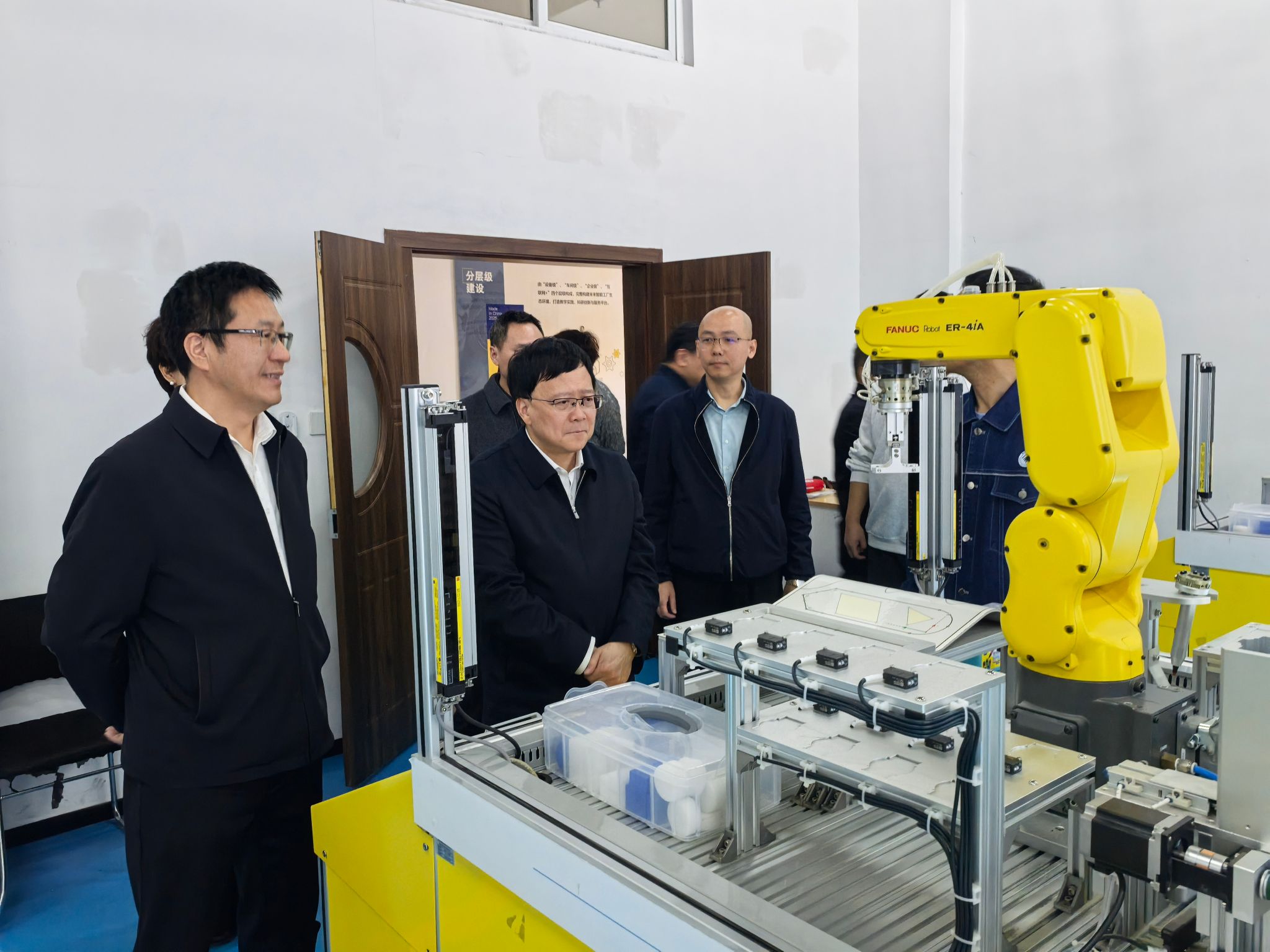 熊义堋一行先后实地走访了beat365在线唯一官网东华山校区交汽实训楼汽车类实训室,公园校区产教融合大楼机器人相关实训室、C区北楼数控车床车间。走访过程中,beat365在线唯一官网智能制造学院副院长(主持工作)、市高级技工学校校长魏弦现场汇报了技校办学、国家级高技能人才培训基地建设及实训设施配备等情况。