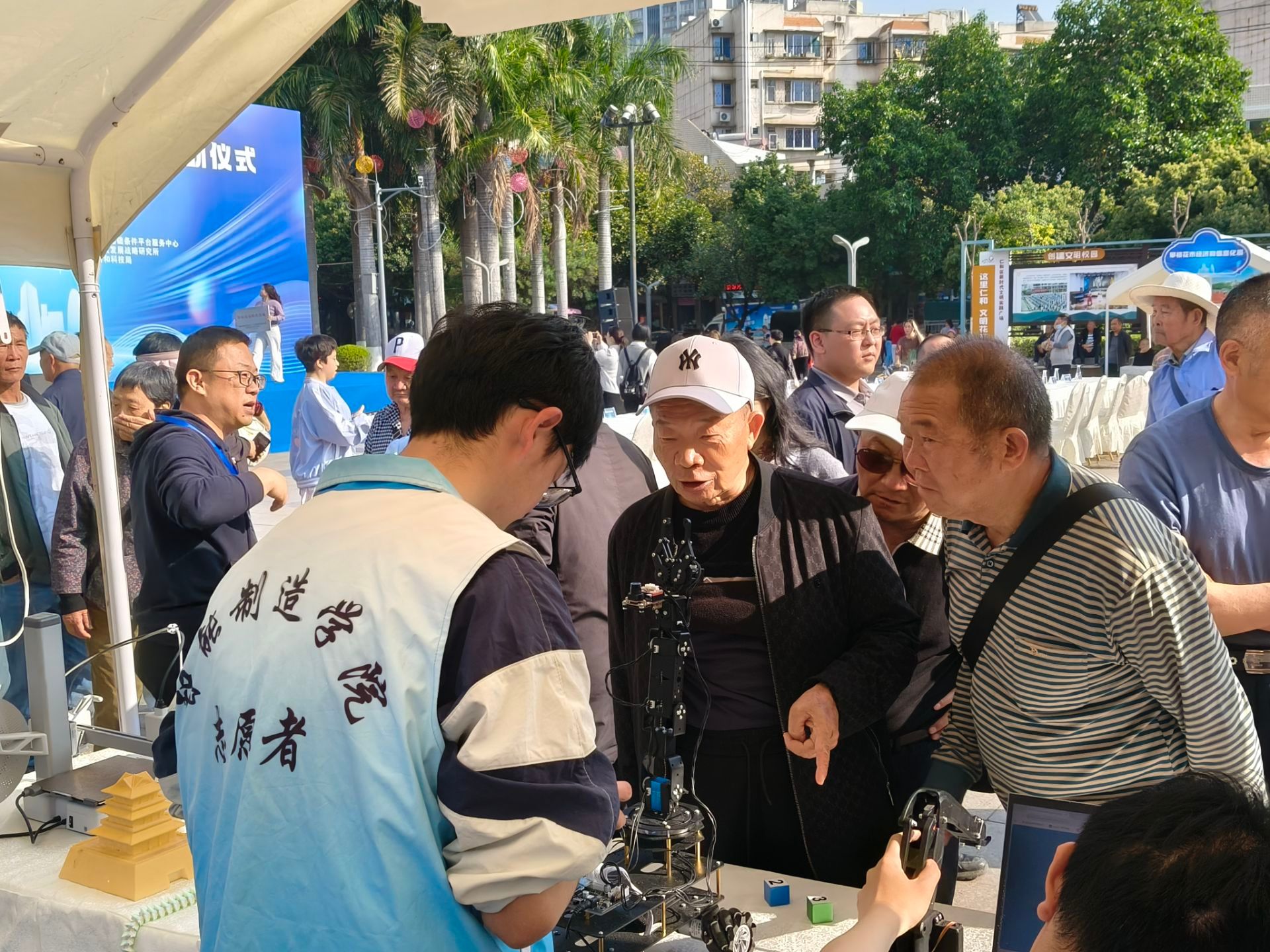 在现场集中示范活动的科普集市区域,智能制造学院的志愿者们设置了专属展示点位,将3D打印技术及成果作为展示重点。活动现场不仅陈列了3D打印制作的工业零件、创意模型、文创产品等实物成果,志愿者还开展了3D打印现场演示,向市民讲解增材制造的技术原理、操作流程以及在智能制造、日常生活、工业生产等领域的应用场景。不少市民驻足观看、亲手体验,近距离感受3D打印技术的魅力,志愿者们则耐心解答市民疑问,用通俗的语言普及智能制造相关知识。