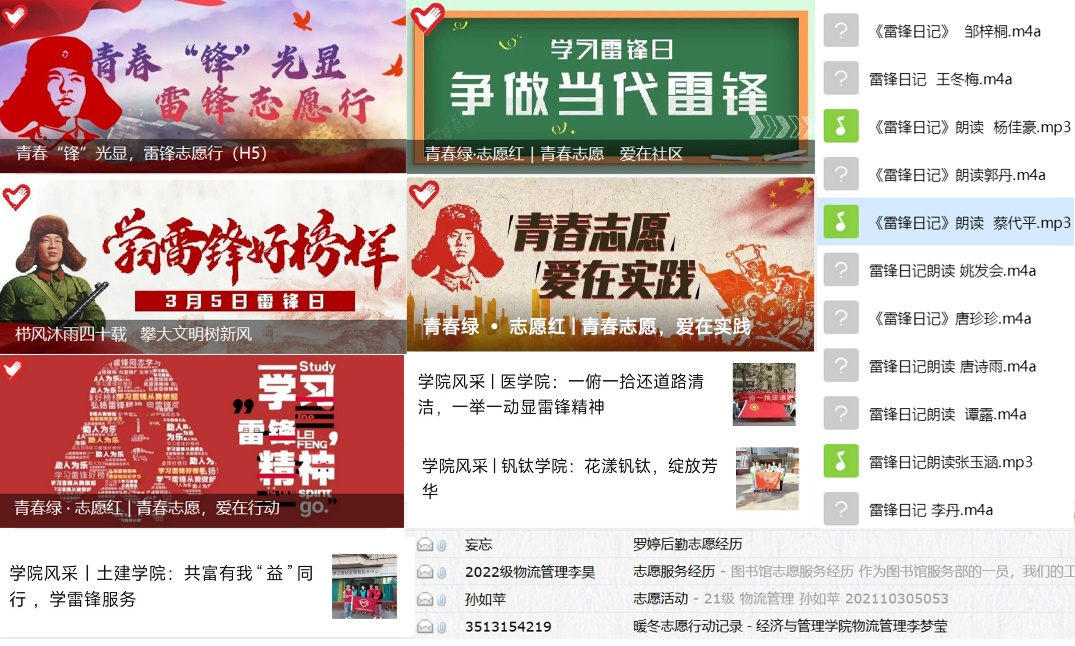 弘扬雷锋精神,展播攀豆风采。学生志愿者充分利用宣传栏、新媒体平台等宣传阵地,大力宣传雷锋事迹和志愿攀豆故事。开展“学雷锋精神”知识答题、传承雷锋精神志愿者签名等活动,深刻认识了雷锋精神的时代内涵。在这些活动中,攀豆用实际行动弘扬雷锋精神,为推进学校文明校园建设贡献青春力量。