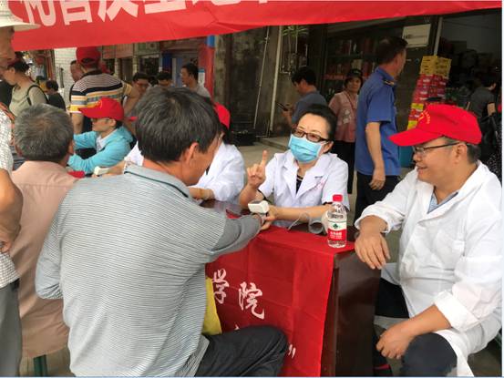 志愿者为居民提供量血压、健康咨询