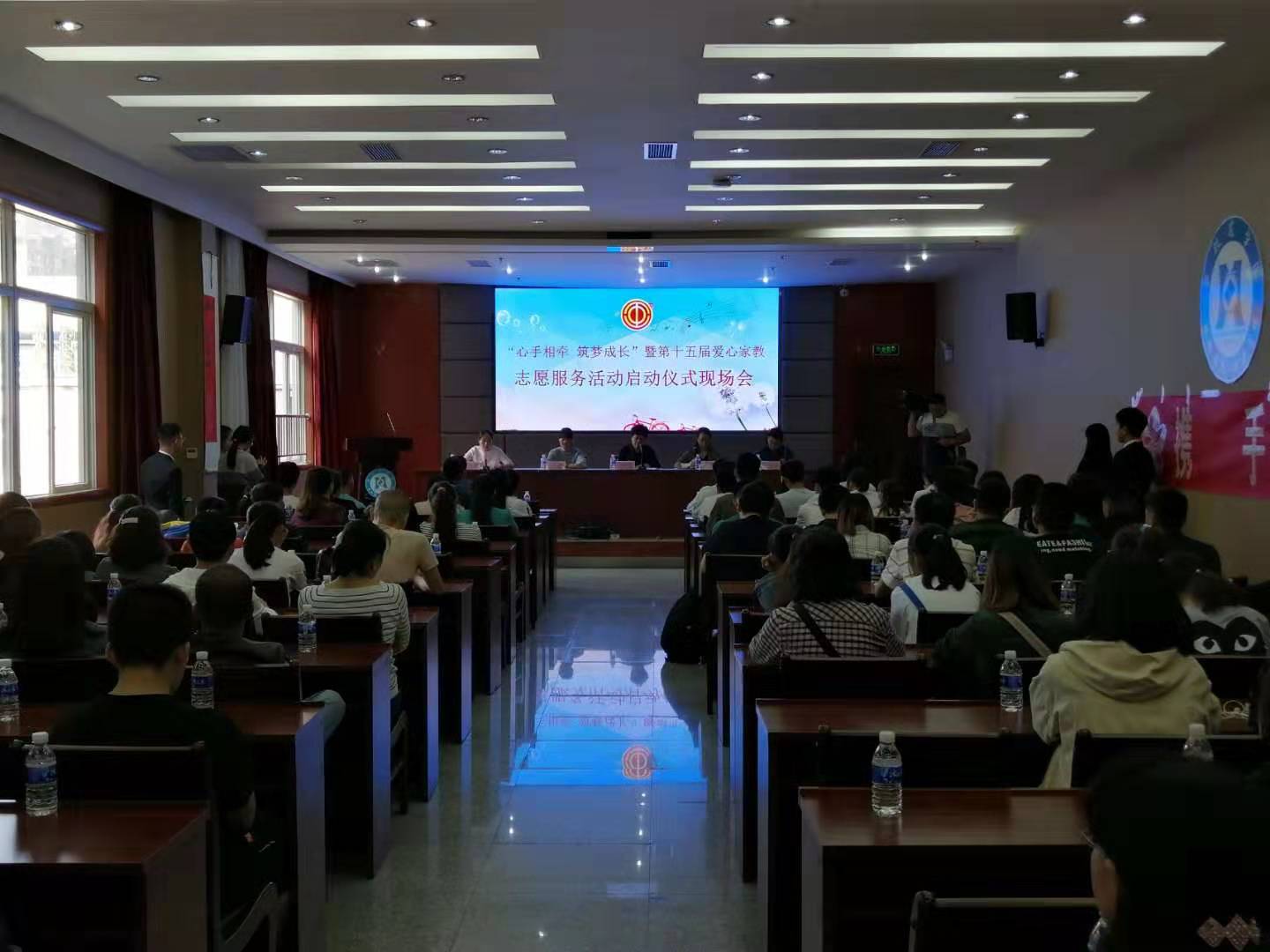 10月19日上午,由市总工会、校工会联合校团委、“携手社”共同开展的第十五届“爱心家教”志愿服务活动在校办公楼四楼附楼会议室正式启动。市总工会党组成员、机关党总支书记王红梅,校工会副主席周敏,校团委副书记王鹃,土建学院党委副书记王东波,“携手社”指导老师刘瑞峰,受助学生、家长及志愿老师100余人参加仪式。