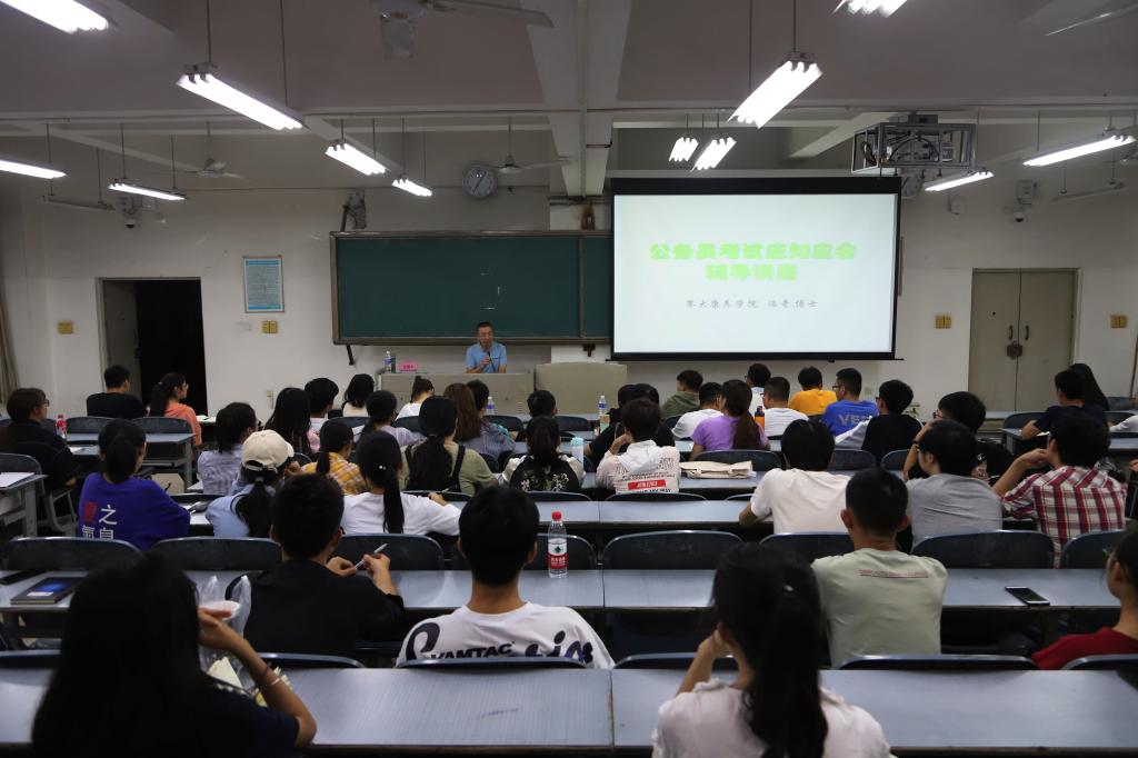 冯奇博士是河南省首批公务员面试考官库考官,多次考入中央、省、市机关公务员面试、体检和录用环节,结合自身多年的考试经历向同学们分享了公务员笔试知识、面试知识和礼仪、穿着服饰等方面应注意的事项。他强调面试时主要测试考生求职动机与所任职位匹配性、语言表达能力、综合分析问题能力、举止仪表和气质修养以及细节问题等,建议同学们在复习中要多关注国家政策走向,关注时事新闻,把握时代脉搏。