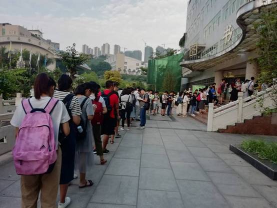 暑假期间学生排队入馆