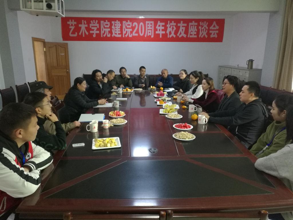 艺术学院先后举办了优秀校友返校座谈会和建院二十周年优秀校友分享会。优秀校友代表、艺术学院党政负责人、各教研室主任及部分在校学生代表参加了会议。会上,罗钧梅代表艺术学院向各位校友返校表示了热烈欢迎,并介绍了学院近年来在人才培养、教学科研、教育实践等方面取得的发展成绩。她表示,以建院二十周年为契机组织校友座谈,一是希望校友常回母校、关心学校;二是加强校友工作、搭建交流平台;三是不忘初心、献计献策,共商、共谋、共促学院发展。分享会上,校友们分别结合自己的学习和工作经历和大家做了深入的交流,共同回忆当年学校生活的美好时光,分享各自的求职创业经历、考研考博经历和工作、生活的心得体会,对母校的飞跃发展纷纷表示自豪。