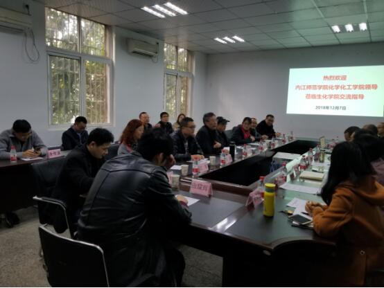 朱学军对内江师范学院化学化工学院莅临交流指导表示欢迎,并简要介绍了生化学院办学历史、办学特色等基本概况,对beat365创双一流型应用型大学生化学院应做的工作提出了工作思路。