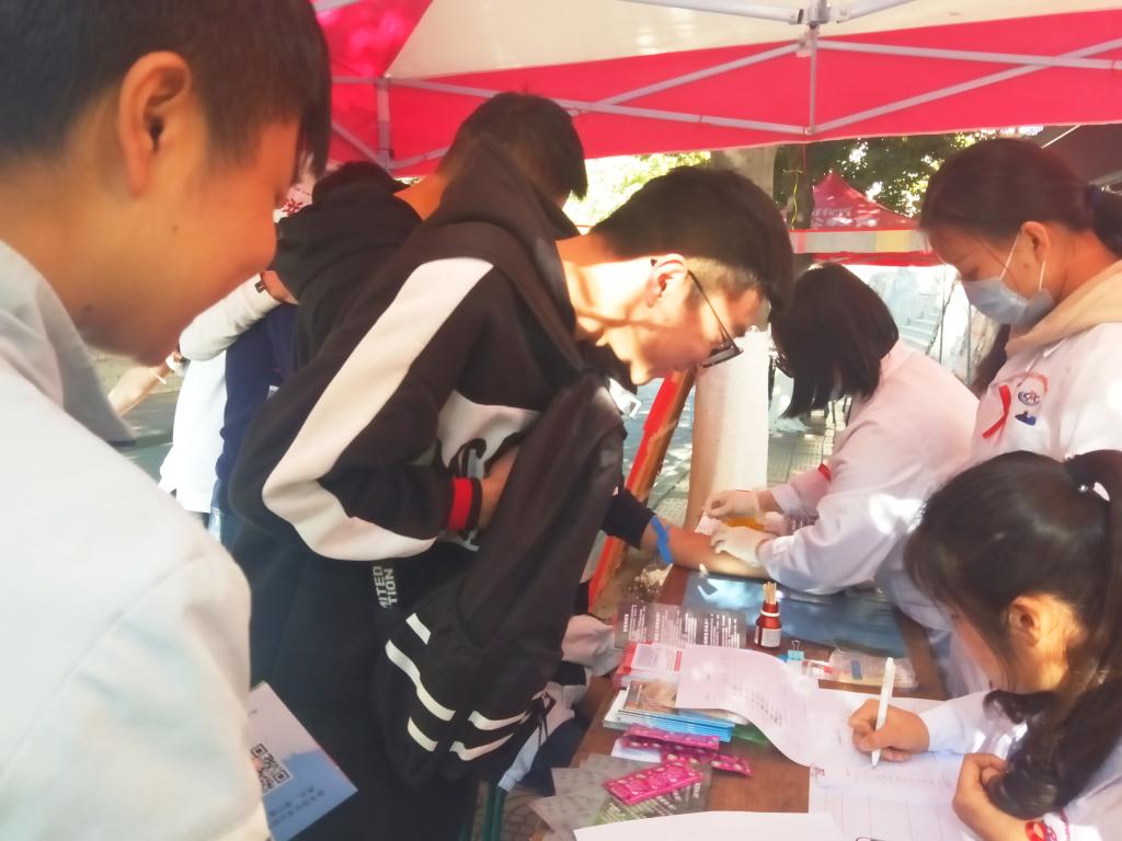 12月1日是第31个世界艾滋病日,校学生会、团委主办,知性者教育协会承办的“主动检测 知艾防艾 共享健康”防艾主题宣传活动在校内举行。