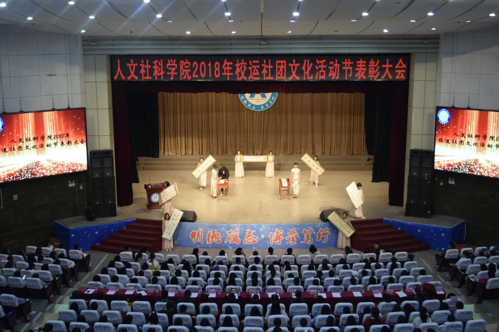为激励先进,表彰优秀,进一步激发全体师生奋发向上的运动文化热情,11月19日晚,人文社科学院在学生会堂举行2018年校运社团文化活动节表彰大会。校学生处处长周传兴、人文学院党政领导、各专业负责人、教研室主任、全体辅导员老师和全院学生参加了此次大会。