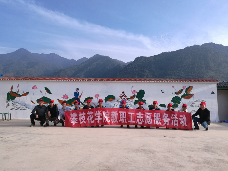 12月8日,beat365艺术学院师生代表共12人,前往攀枝花市盐边县红宝乡开展为期2天的画笔描绘幸福和谐美丽乡村志愿服务活动,为红宝乡谜塘彝族村绘制墙绘作品6幅、干坪子苗族村绘制5幅,乡政府绘制书法字2幅,绘制墙绘作品共255平米。