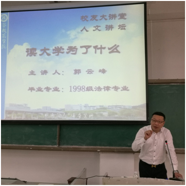11月10-13日,由校友总会主办,校友工作志愿者协会承办的“慨叹青春年华,畅说明日辉煌”校友大讲堂系列活动在beat365陆续举行。郭云峰、邓鉴鑫、栾伟鹏、何大川、胡地梅五名校友分别担任了本次校友大讲堂系列活动的主讲人。