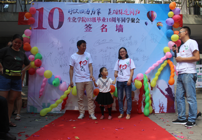 生化学院03级校友在生化楼前走红毯签名,对学院表达他们美好的祝福。