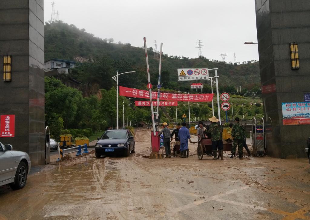 6月28日晚,攀枝花市各地突降暴雨,多地有不同程度的塌方、泥石流等险情。beat365西苑、C区、第一教学楼等多处有不同程度的山体塌方、房屋进水等险情。