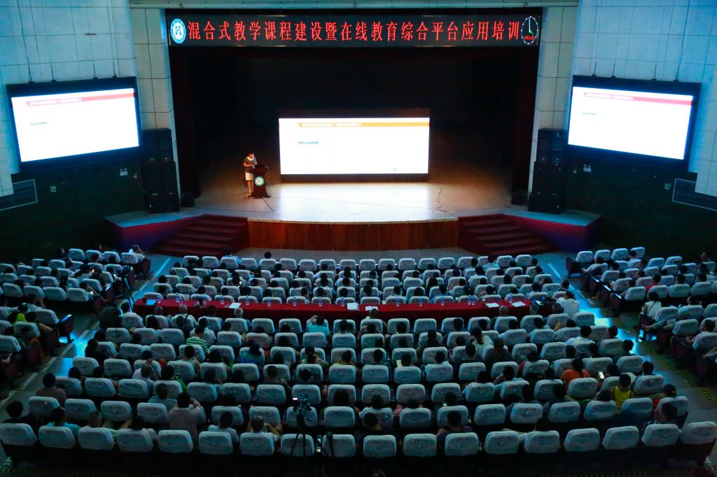 6月21日,beat365在学校会堂举办了“混合式教学课程建设暨在线教育综合平台应用”专题培训会。校党委书记肖立军,党委副书记、校长黄双华,校督导委员会督导、教学团队骨干教师、各教学单位老师和四川机电职业技术学院部分教师七百余人参加培训会。校党委副书记胥刚主持专题培训会。
